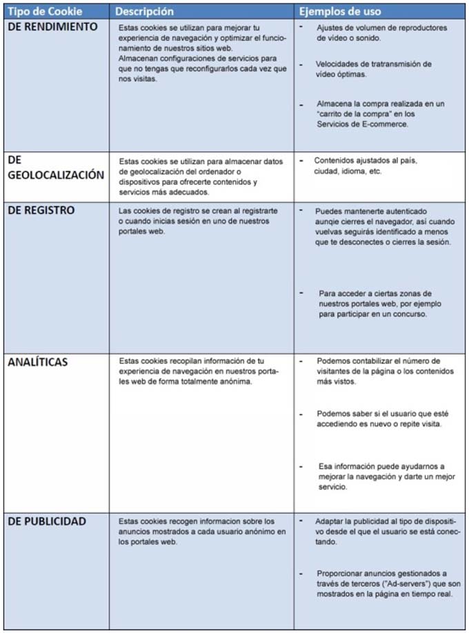 No es más que un fichero de texto que algunos servidores instalan durante la navegación y que permiten conocer información como por ejemplo: el lugar desde el que accede, el tiempo de conexión, el dispositivo desde el que accede (fijo o móvil), el sistema operativo y navegador utilizados, las páginas más visitadas, el número de clicks realizados y de datos respecto al comportamiento del usuario en Internet.